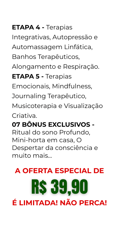 Um programa online de 21 dias que utiliza técnicas complementares reconhecidas pela OMS e pelo SUS que vai te ajudar a dormir melhor, reduzir calorões, equilibrar o humor e recuperar sua energia.
